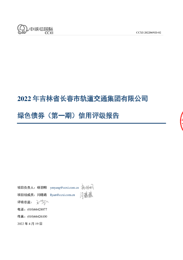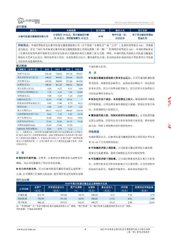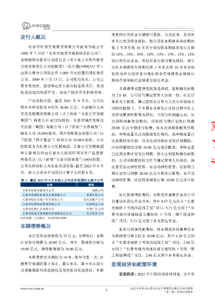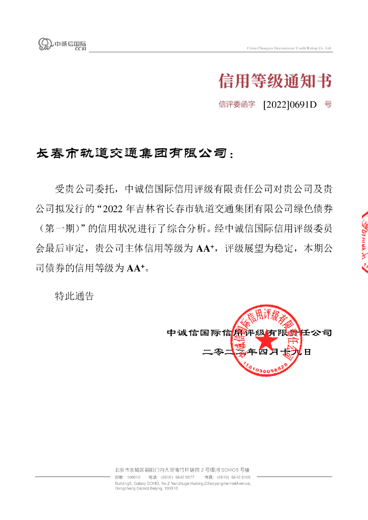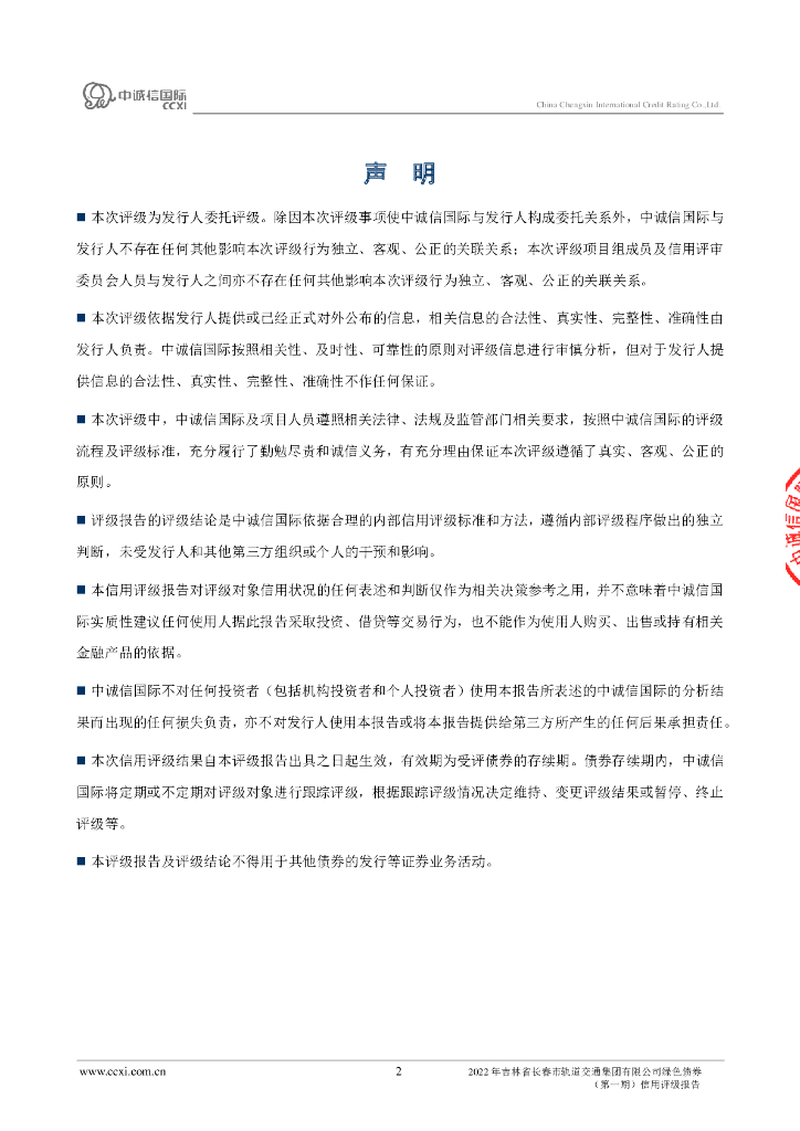 中诚信:2022年吉林省长春市轨道交通集团有限公司绿色债券(第一期)信用评级报告.pdf
