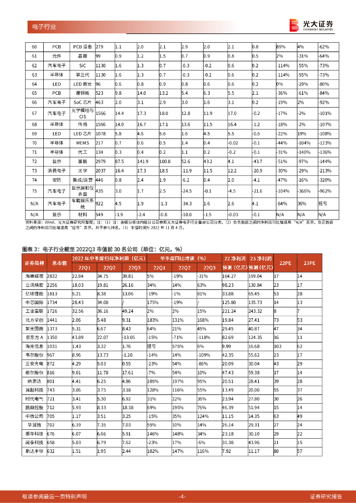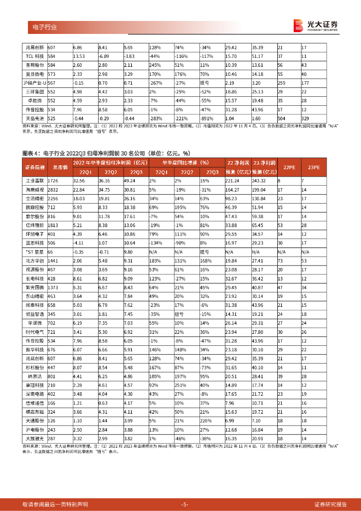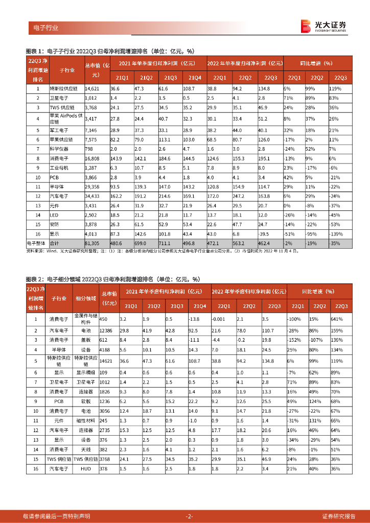 光大证券:电子行业2022年三季报总结:22Q3业绩整体承压,特斯拉供应链、卫星电子、半导体设备表现较好.pdf