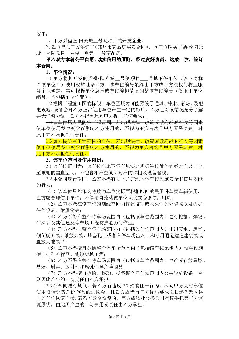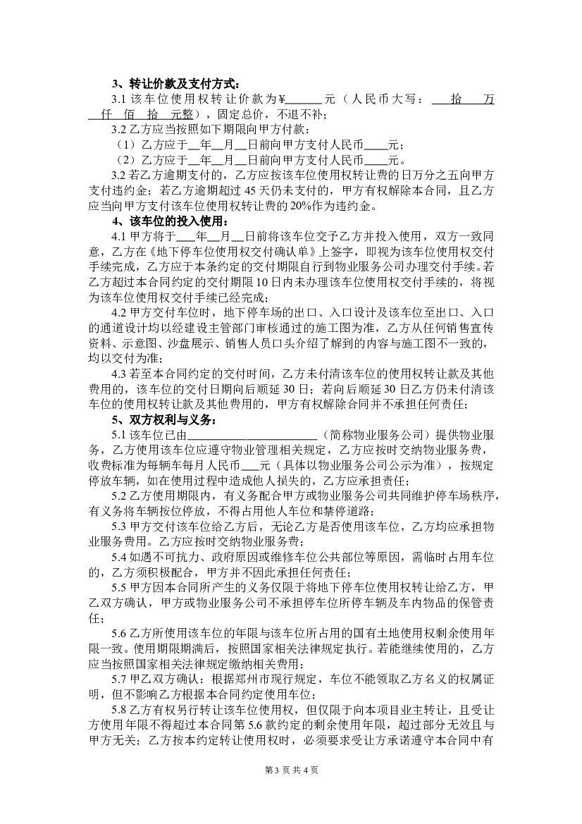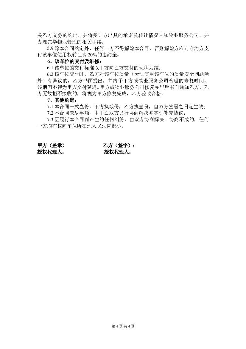 #车位文案# 车位使用权转让合同.doc