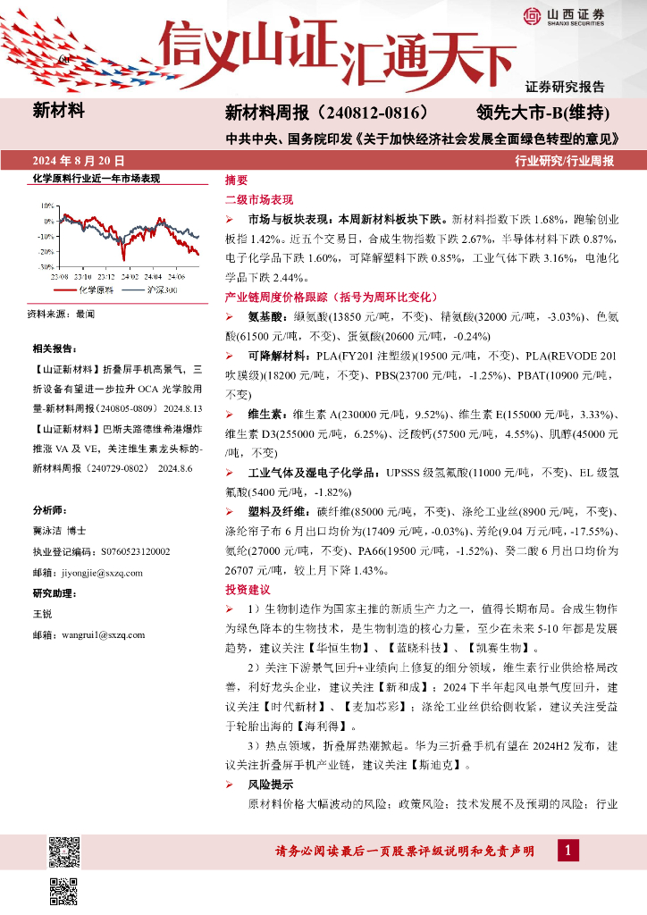 山西证券:新材料行业周报:新材料周报(240812-0816)中共中央、国务院印发《关于加快经济社会发展全面绿色转型的意见》.pdf