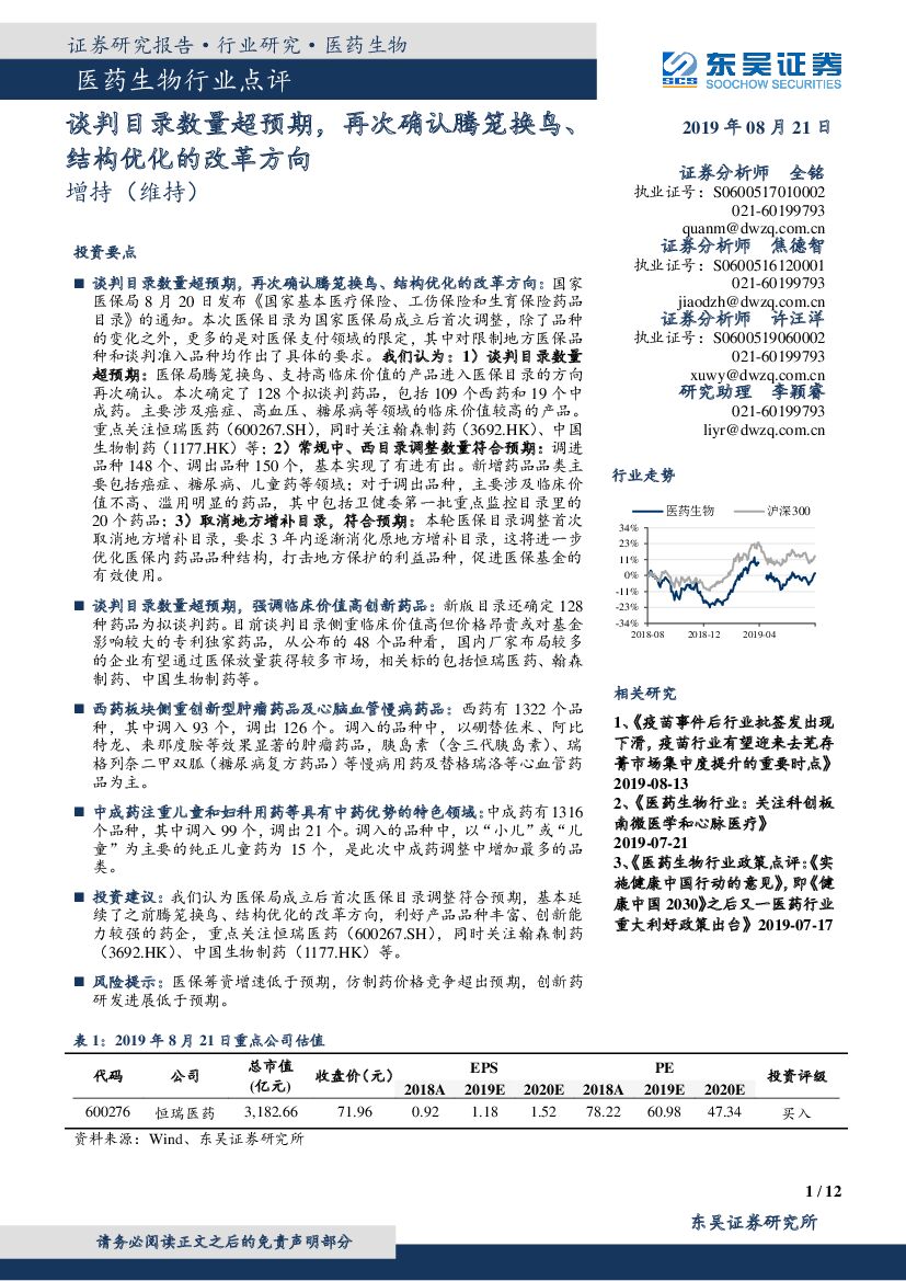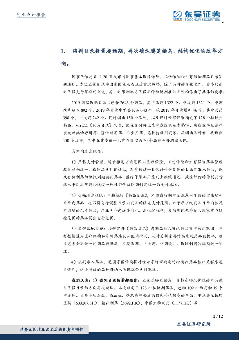 东吴证券:医药生物行业点评:谈判目录数量超预期,再次确认腾笼换鸟、结构优化的改革方向.pdf