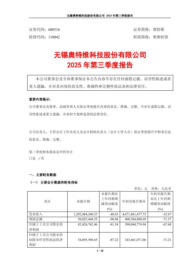 118042-奥特维:无锡奥特维科技股份有限公司2025年第三季度报告.pdf