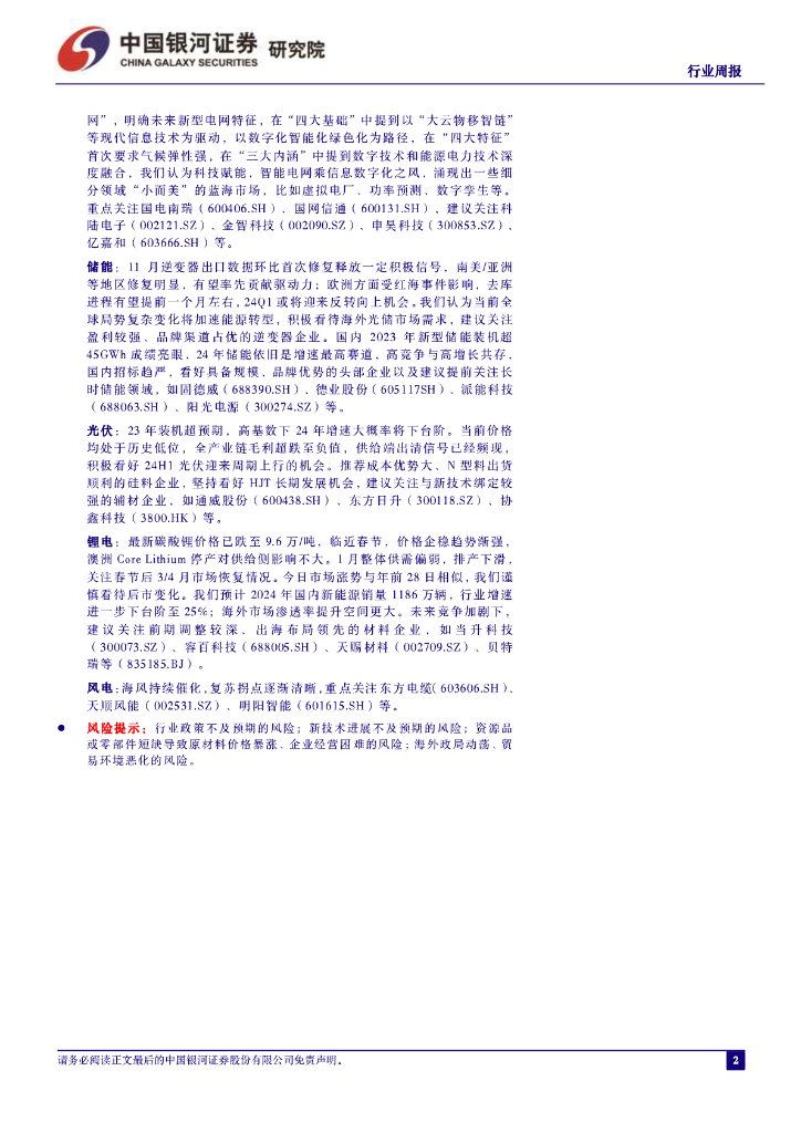 中国银河:电力设备及新能源行业周报:国网年初会议首提打造“数智化坚强电网”,光储领涨新能源板块.pdf