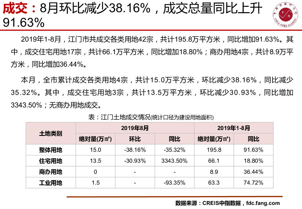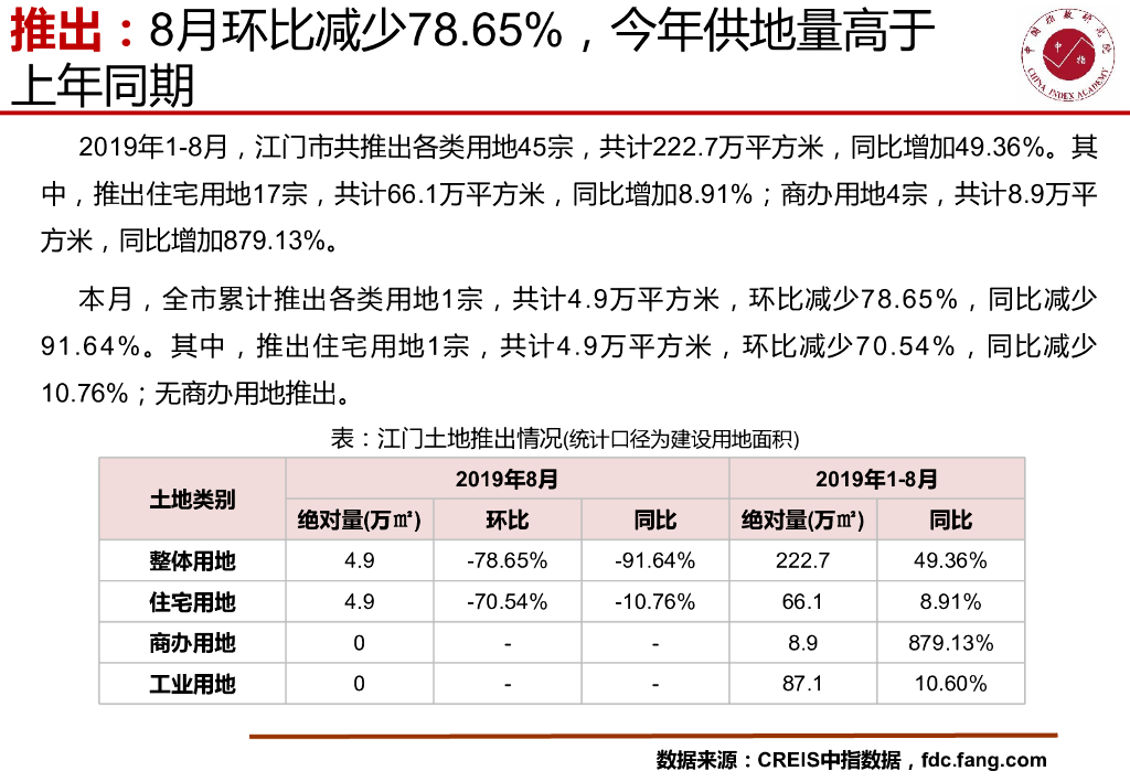中国指数研究院:江门房地产市场快报(2019年8月).pdf