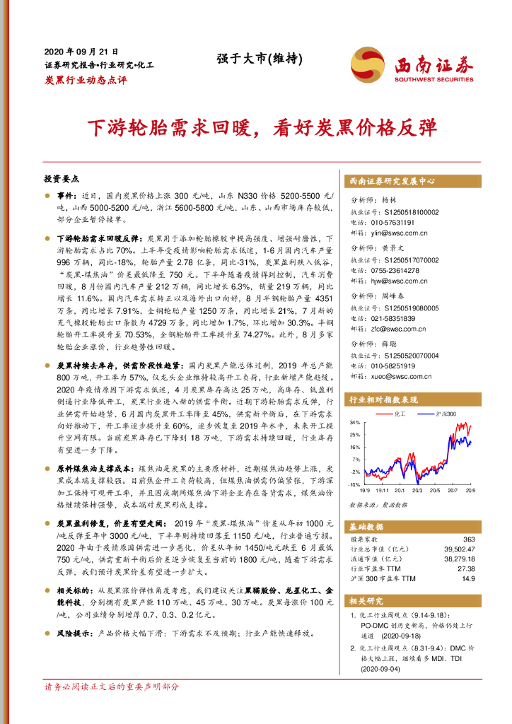 西南证券:炭黑行业动态点评:下游轮胎需求回暖,看好炭黑价格反弹.pdf