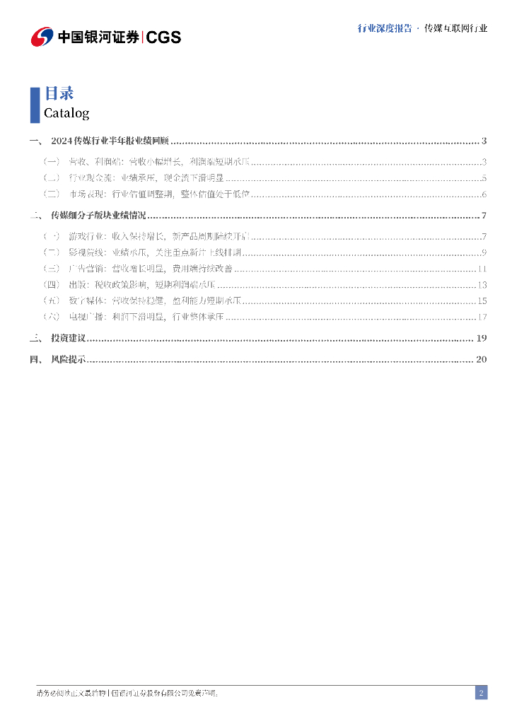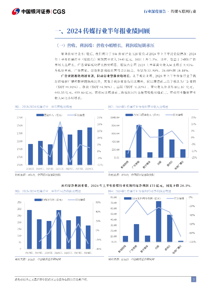 中国银河:传媒互联网行业2024半年报业绩总结:利润端整体承压,关注优质内容供给.pdf