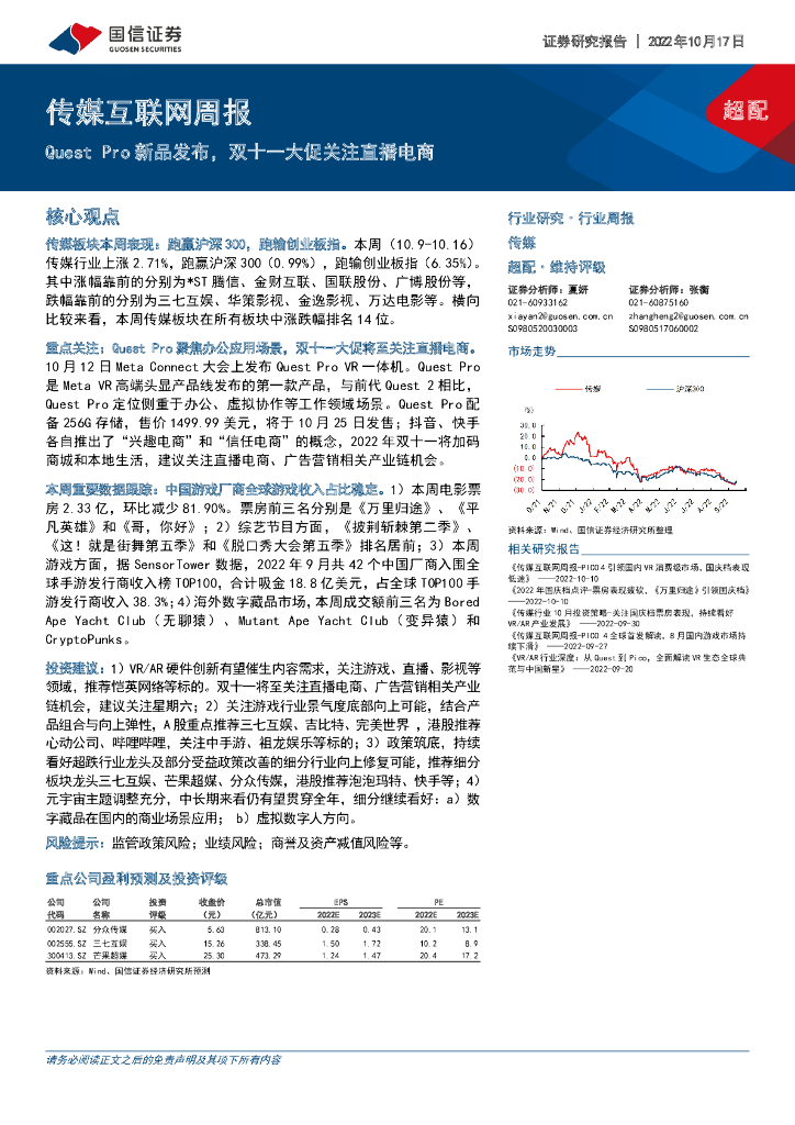 国信证券:传媒互联网周报:Quest Pro新品发布,双十一大促关注直播电商.pdf