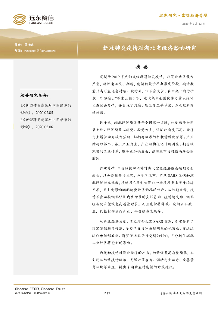 远东资信:新冠肺炎疫情对湖北省经济影响研究.pdf