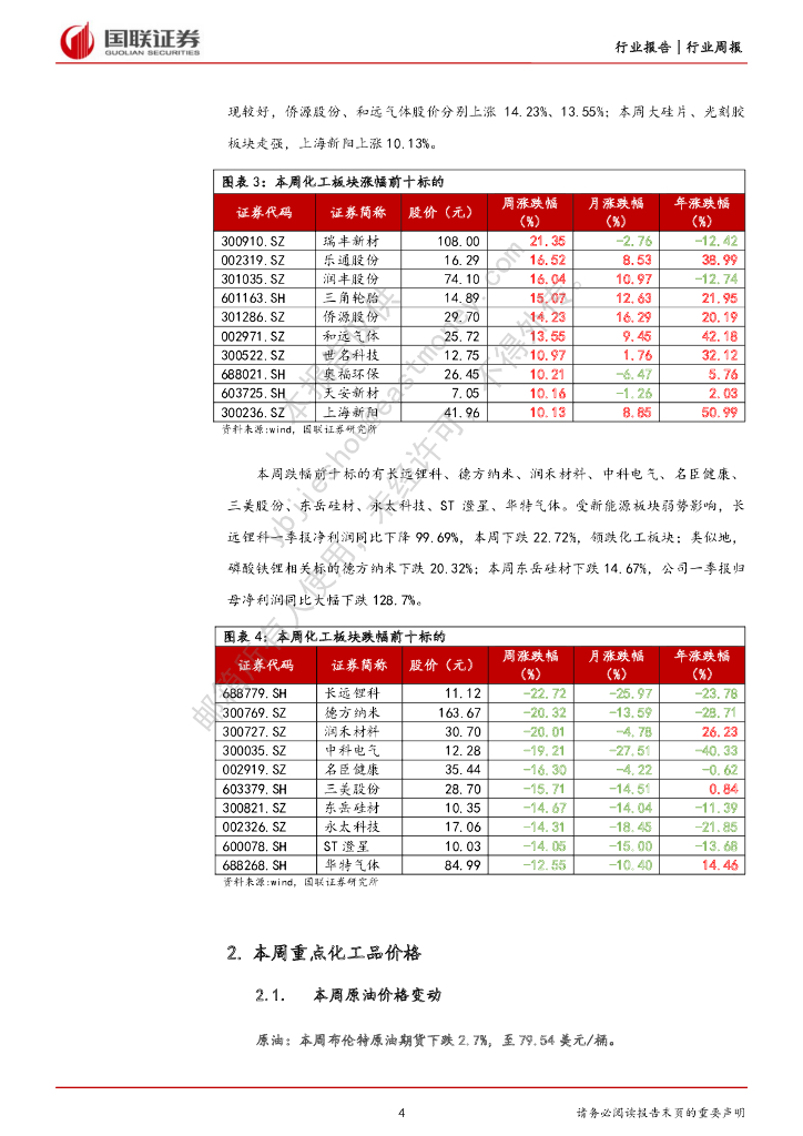 国联证券:化工行业2023年周报:BDO、碳酸锂价格上涨,国际油价震荡下行.pdf