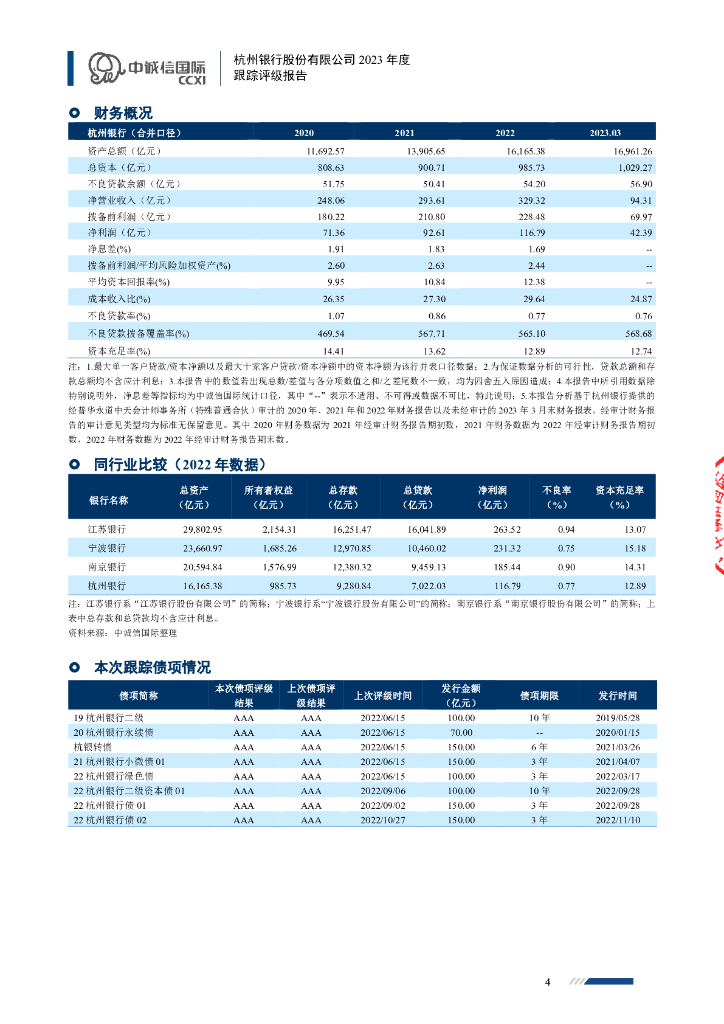 中诚信:杭州银行股份有限公司2023年度跟踪评级报告.pdf