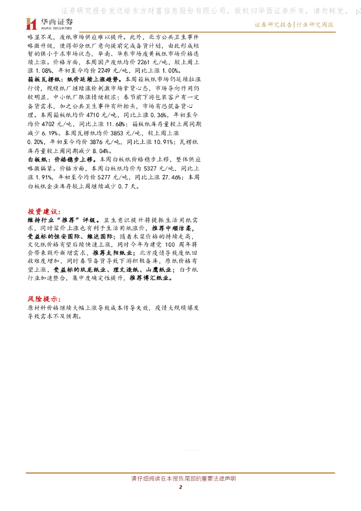 华西证券:造纸行业数据跟踪报告:木浆系成本端利好纸价上涨;废纸系下游积极备库推动原纸价格向上.pdf