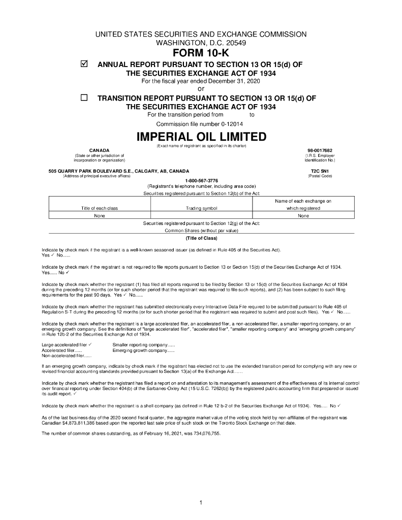 Imperial Oil Limited(IMO)2020财年年度报告(英文版).pdf