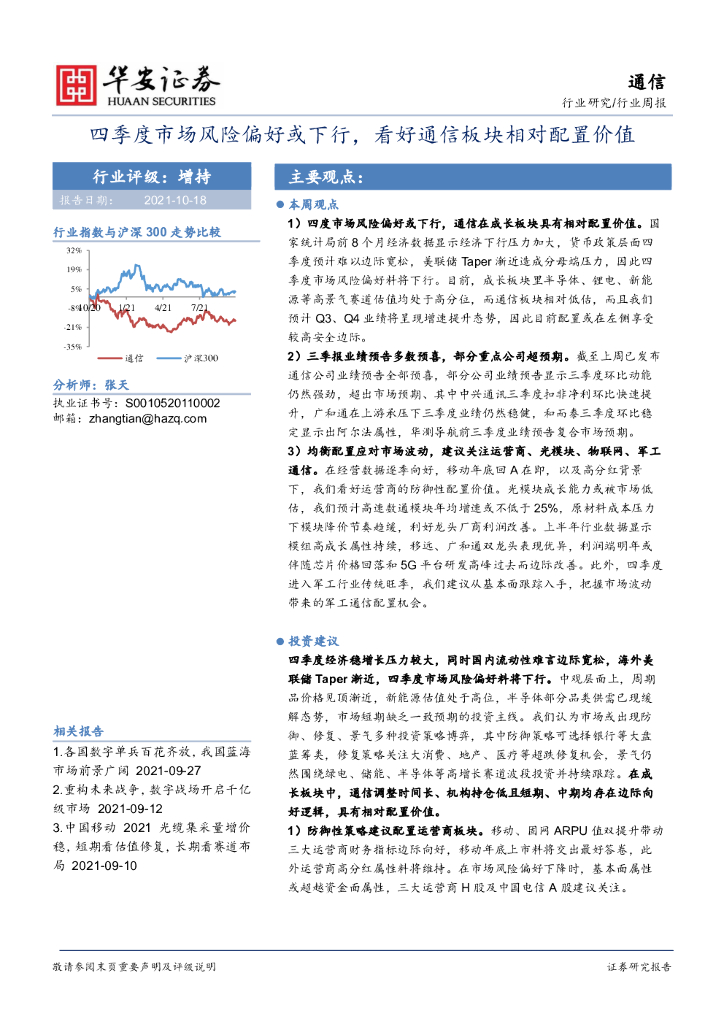 华安证券:通信行业周报:四季度市场风险偏好或下行,看好通信板块相对配置价值.pdf