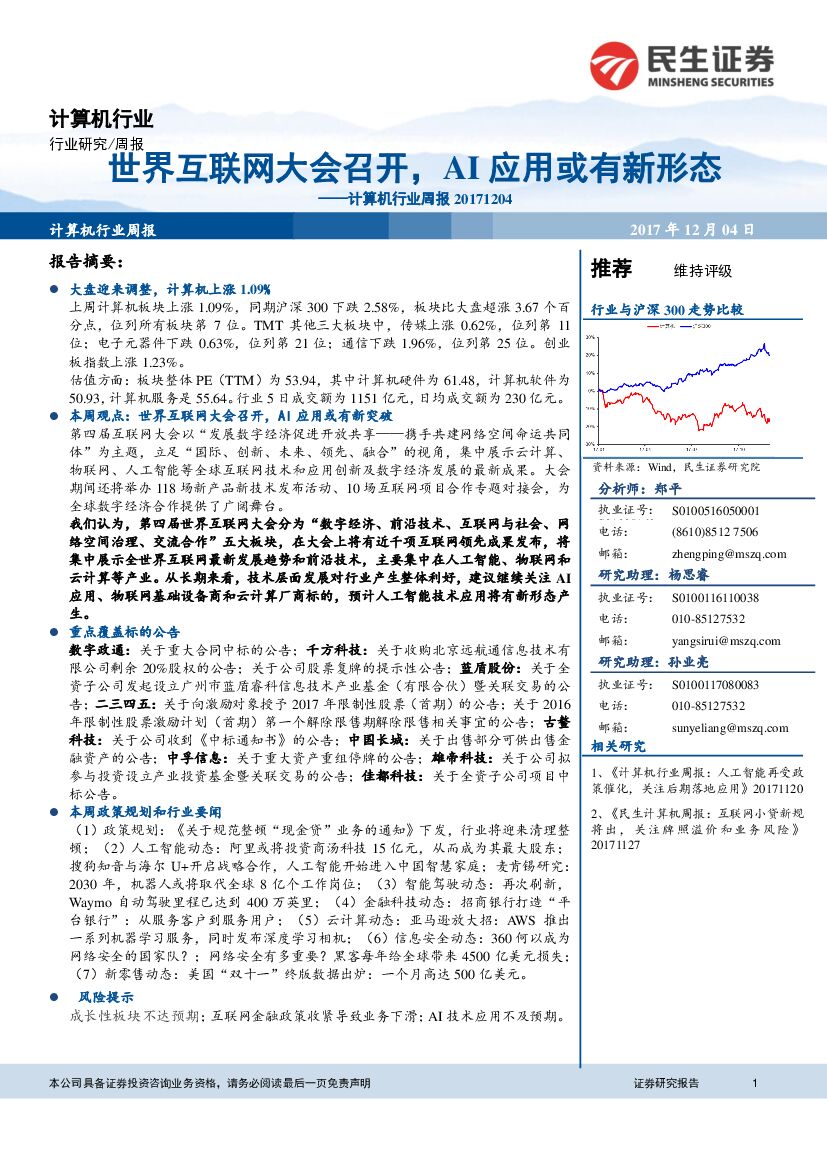 民生证券:计算机行业周报:世界互联网大会召开,AI应用或有新形态.pdf