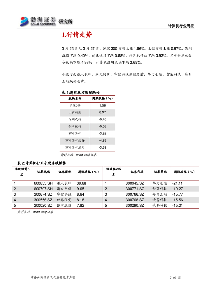 渤海证券:计算机行业周报:二季度即将来临,计算机行业边际有望改善.pdf