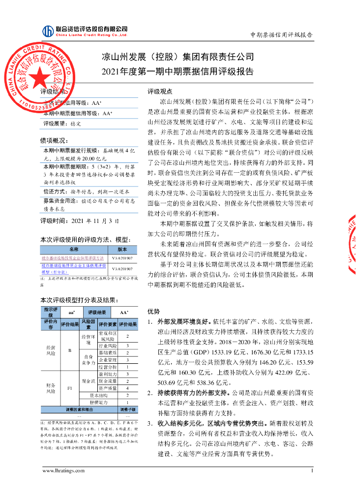 联合资信:凉山州发展(控股)集团有限责任公司2021年度第一期中期票据信用评级报告.pdf