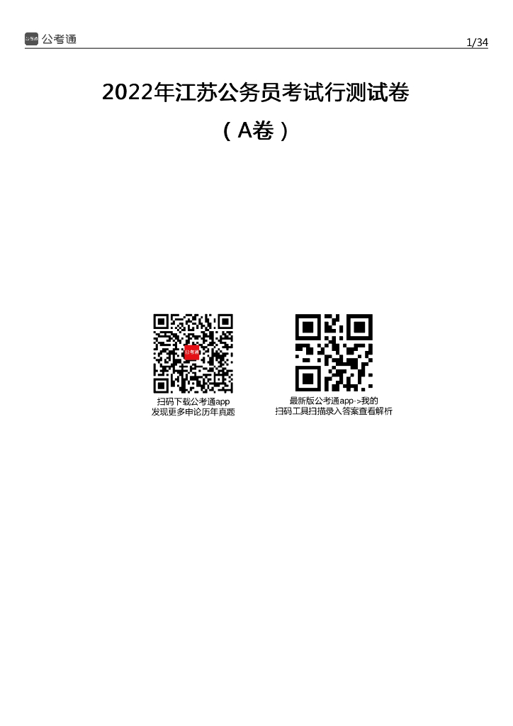 2022年江苏公务员考试行测试题(A卷).pdf