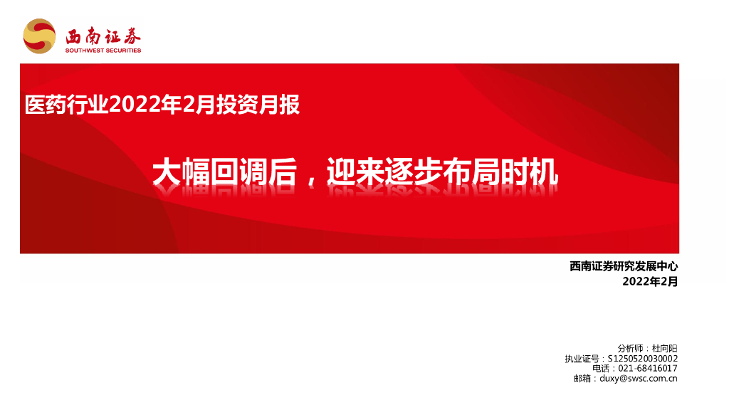 西南证券:医药行业2022年2月投资月报:大幅回调后,迎来逐步布局时机.pdf