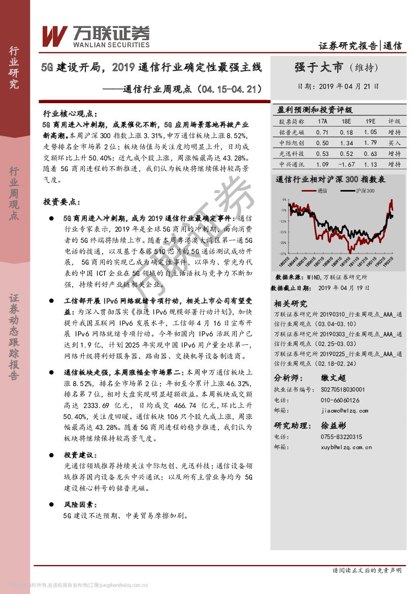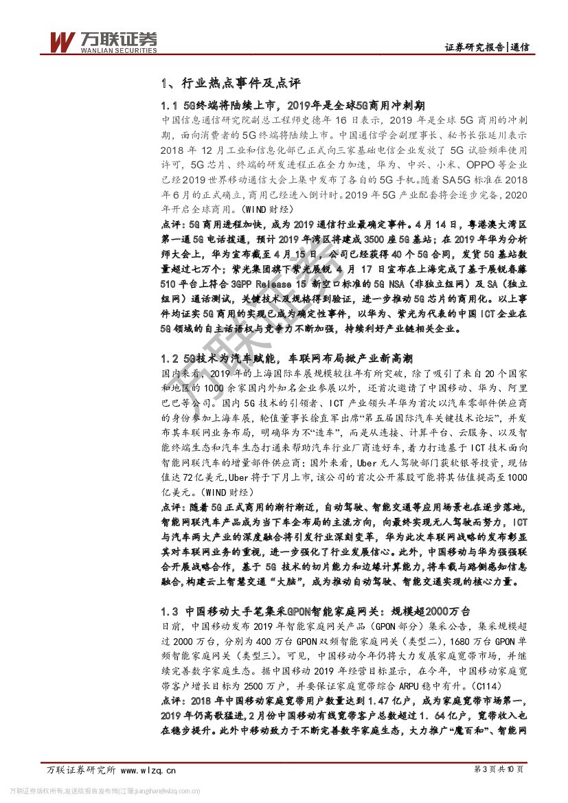 万联证券:通信行业周观点:5G建设开局,2019通信行业确定性最强主线.pdf