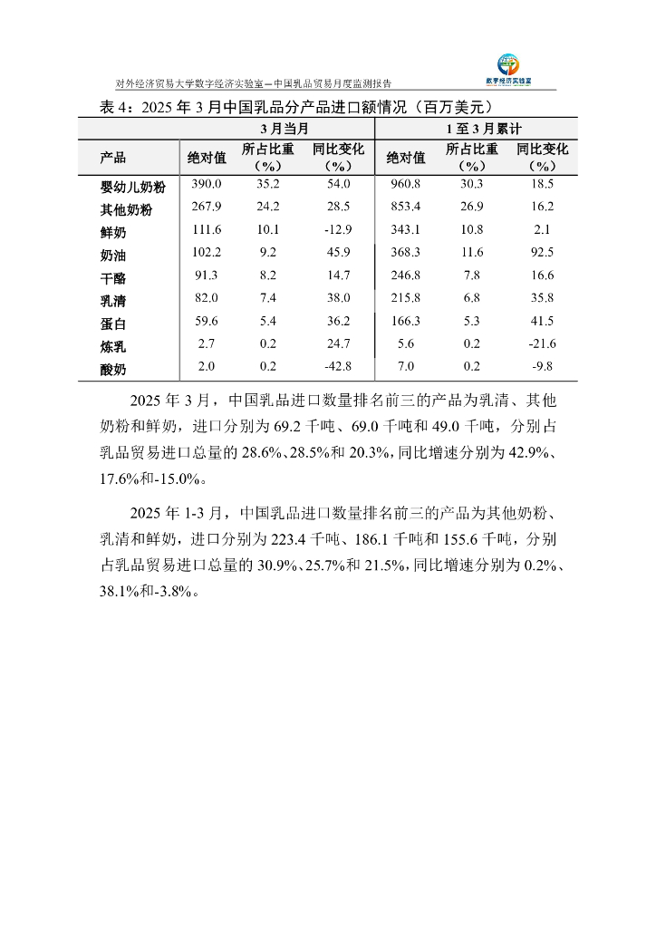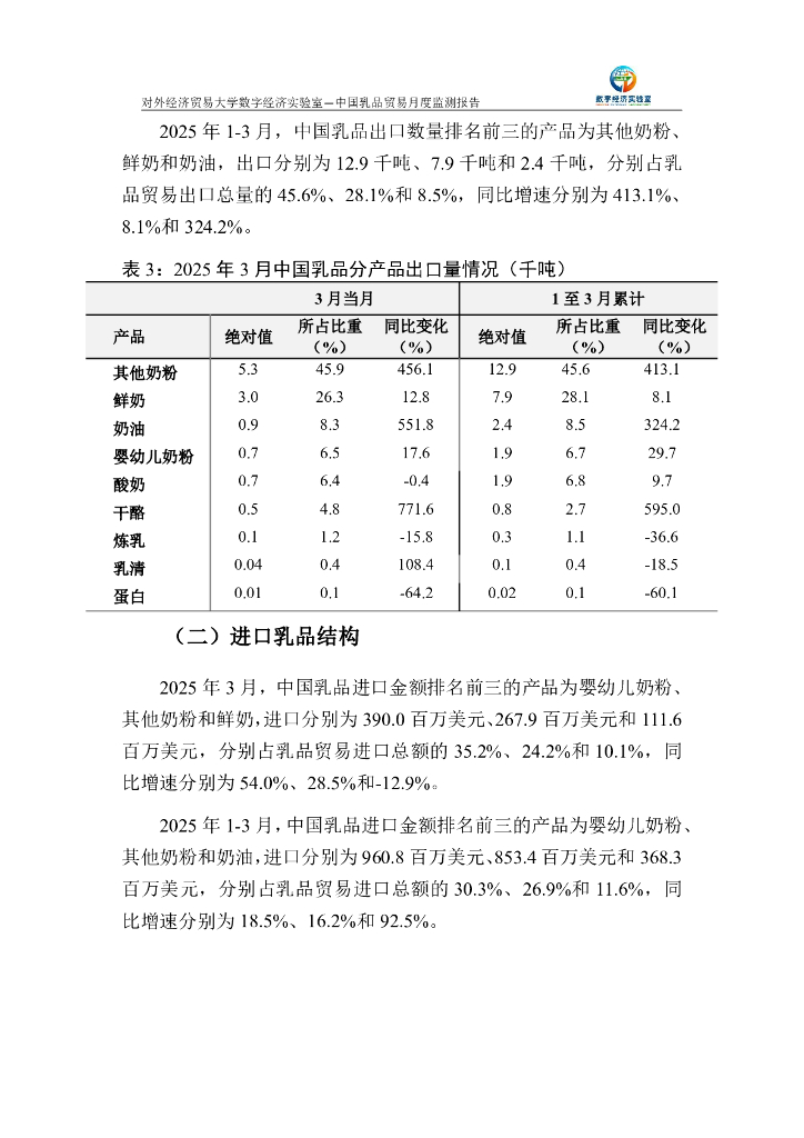 对外经济贸易大学:中国乳品贸易月度监测报告(2025年1-3月).pdf