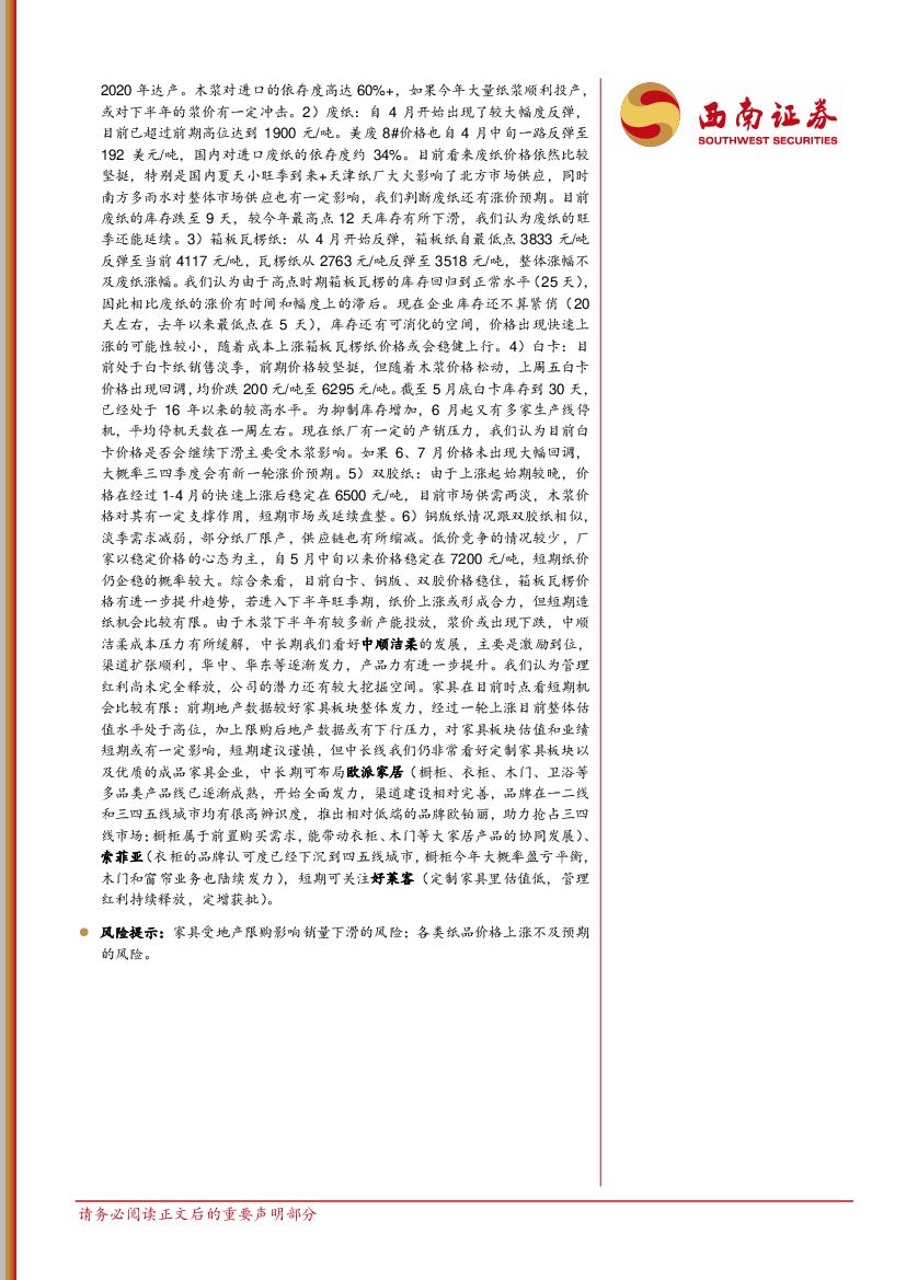 西南证券:轻工纺服行业周报:短期家具偏谨慎,持续关注原纸涨价.pdf