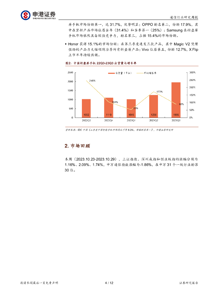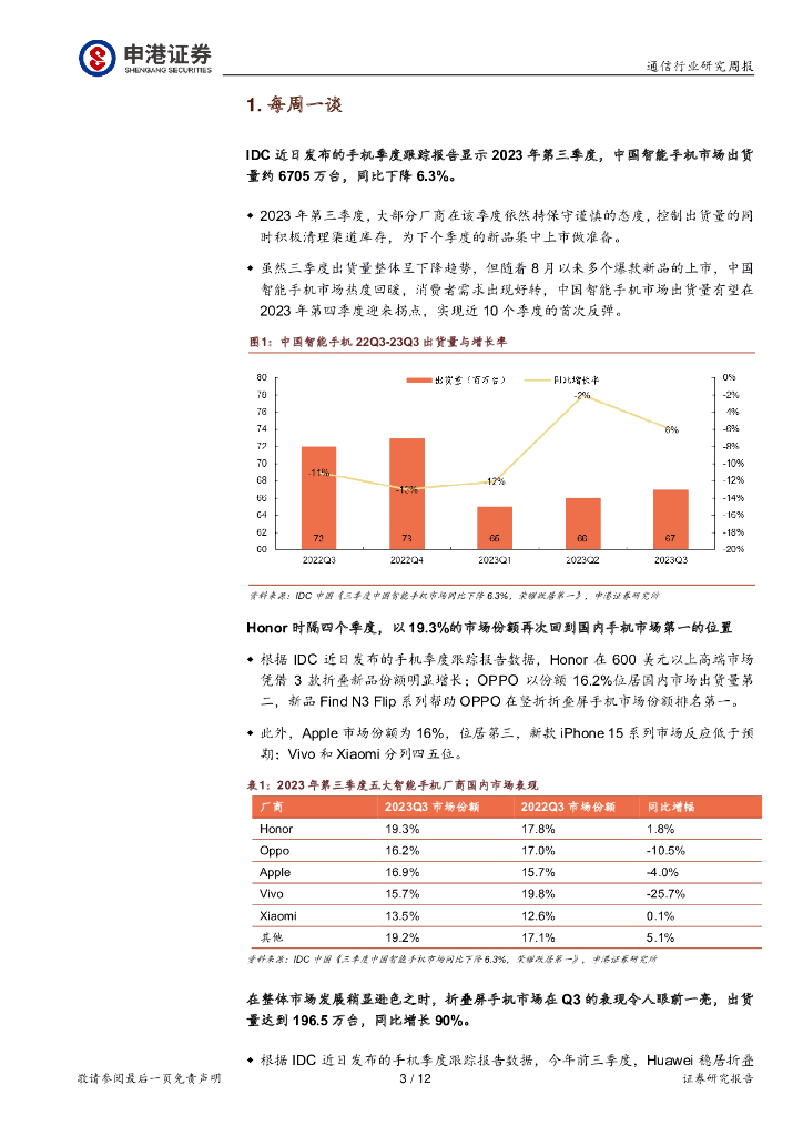 申港证券:通信行业研究周报:Q3国内手机市场持续下滑 折叠屏市场蓬勃发展.pdf