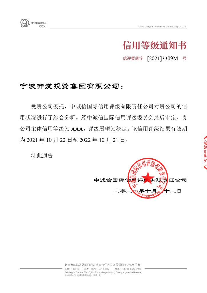 中诚信:2021年度宁波开发投资集团有限公司信用评级报告.pdf
