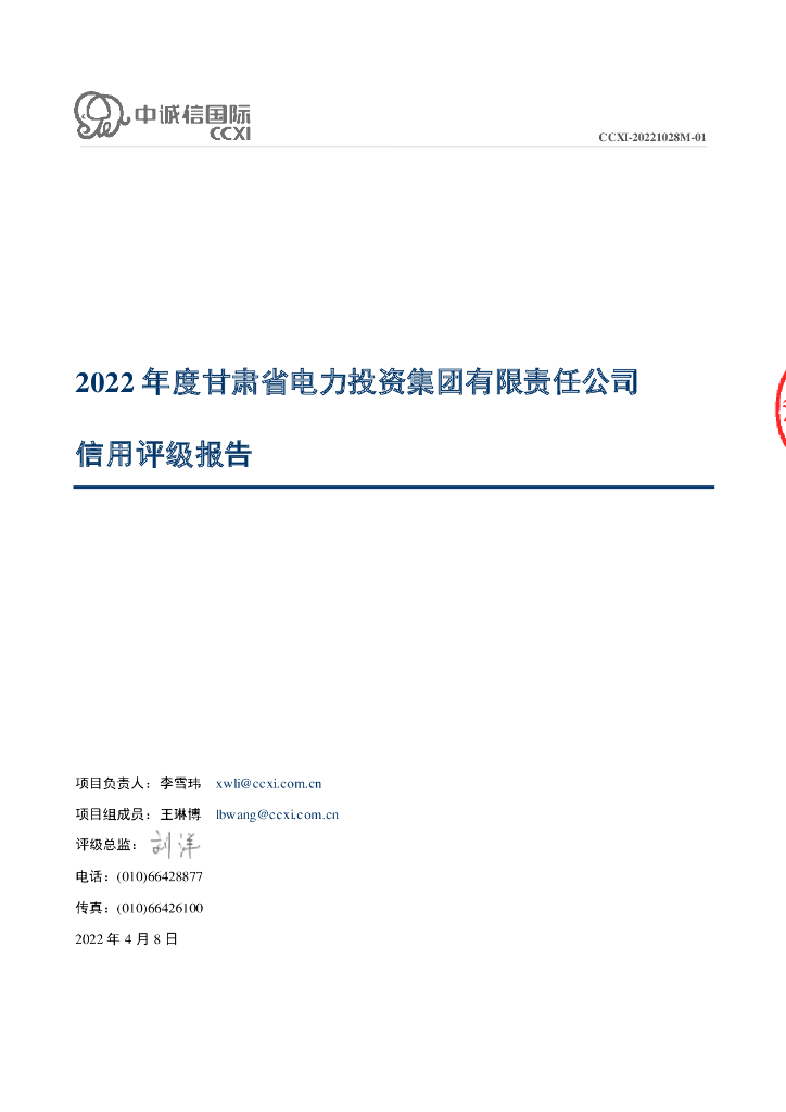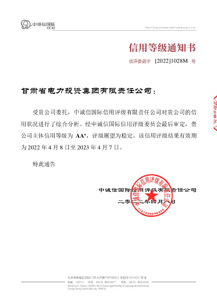 中诚信:2022年度甘肃省电力投资集团有限责任公司主体信用评级报告.pdf