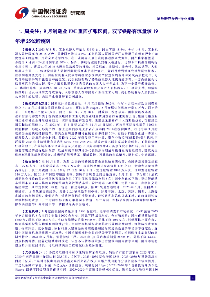 中国银河:机械设备行业深度报告:9月制造业PMI重回扩张区间,双节铁路客流量较19年增25%超预期.pdf