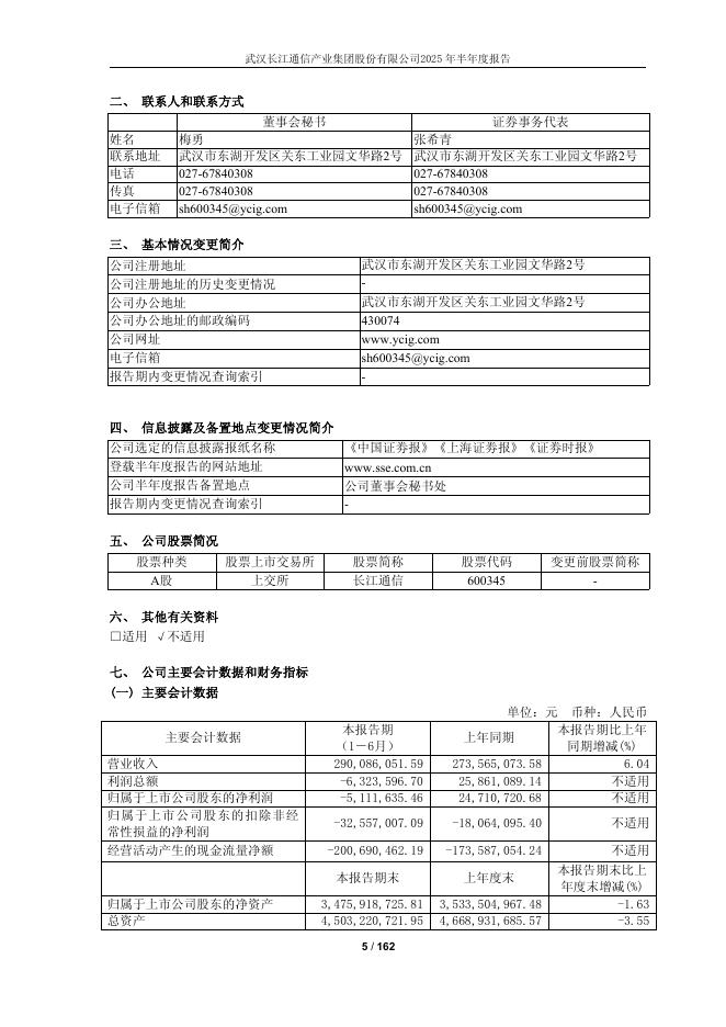600345-长江通信:长江通信2025年半年度报告.pdf