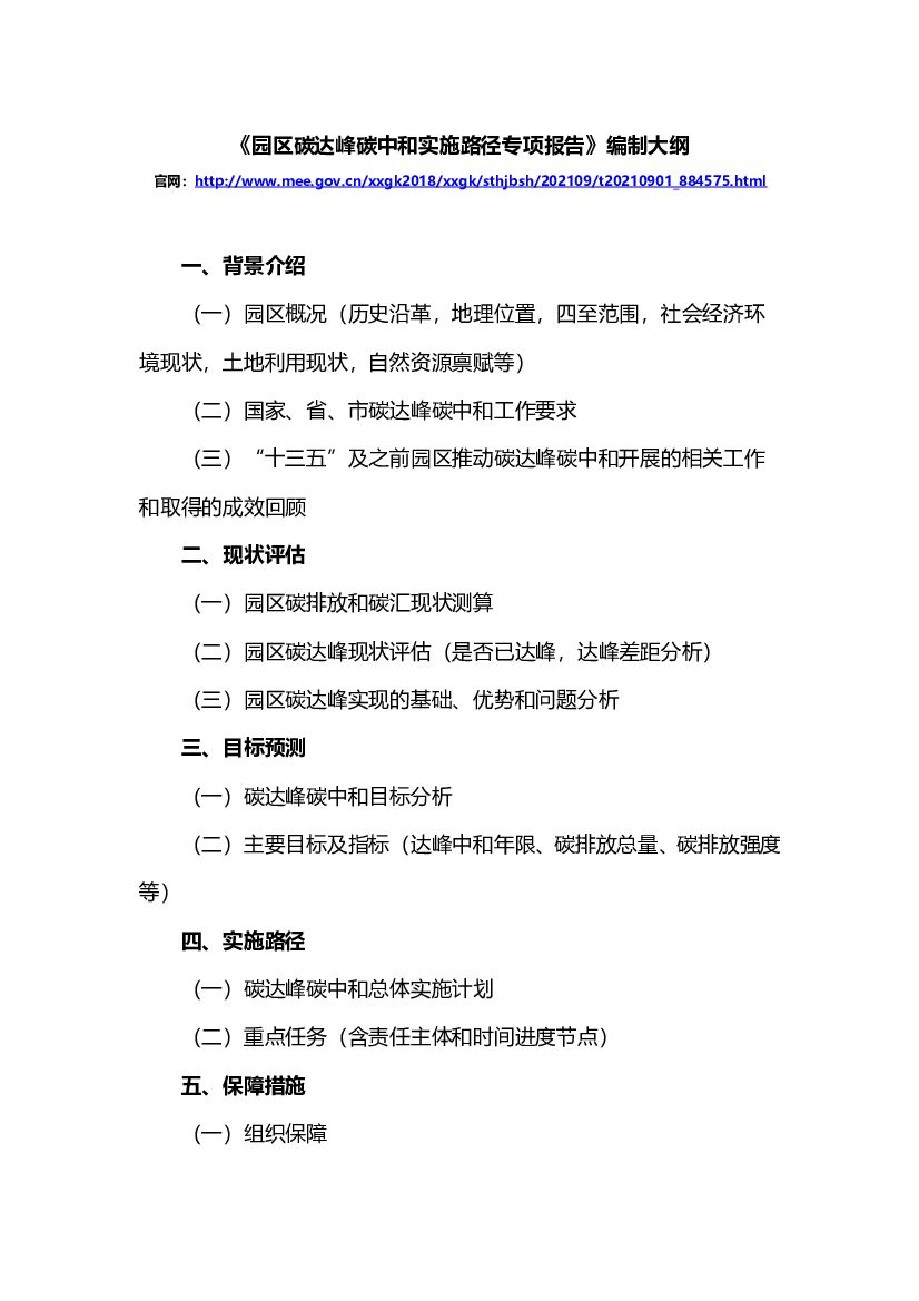 《园区碳达峰碳中和实施路径专项报告》编制大纲.doc