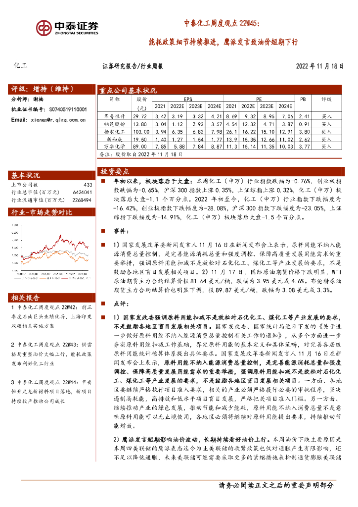 中泰证券:中泰化工周度观点22W45:能耗政策细节持续推进,鹰派发言致油价短期下行.pdf