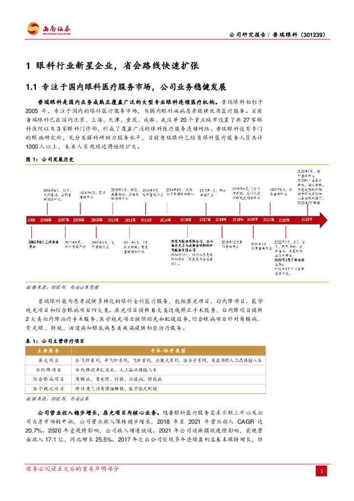 西南证券:普瑞眼科(301239)-眼科行业新星,自下而上持续扩张.pdf