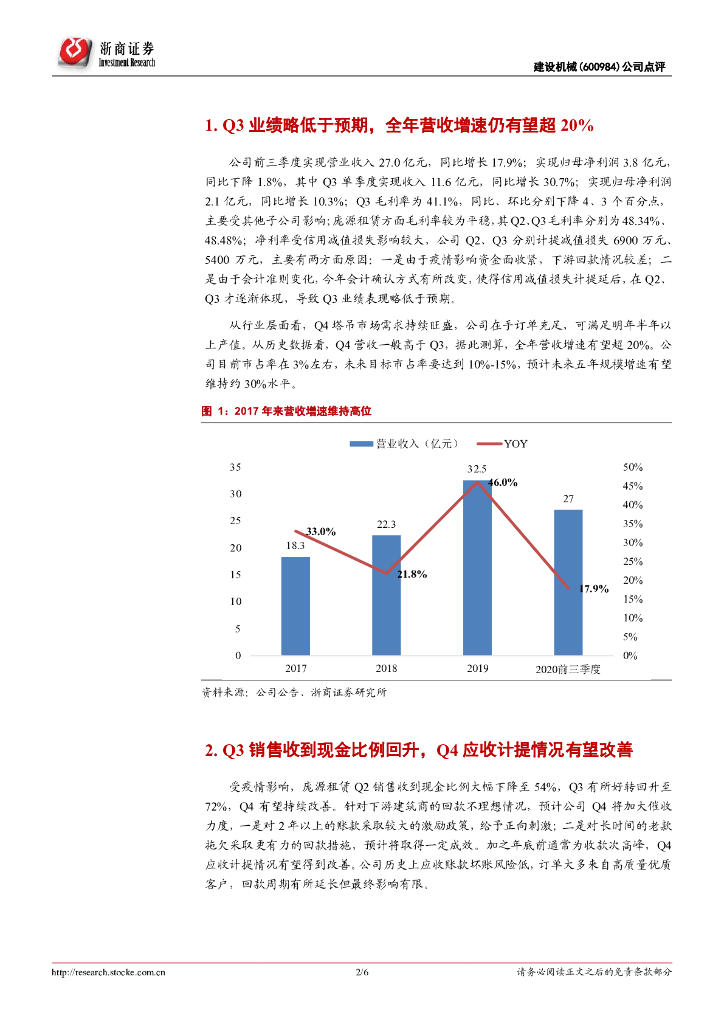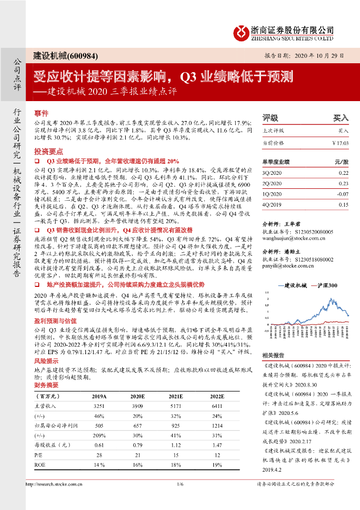 浙商证券:建设机械2020三季报业绩点评:受应收计提等因素影响,Q3业绩略低于预测.pdf