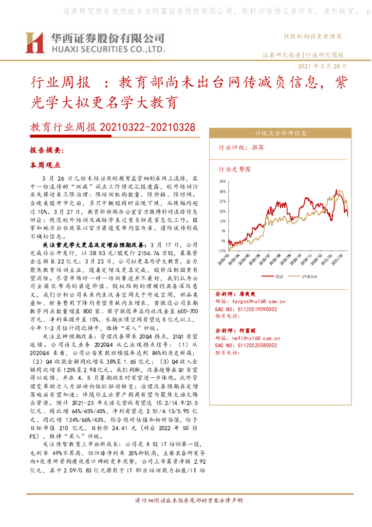 华西证券:教育行业周报:教育部尚未出台网传减负信息,紫光学大拟更名学大教育.pdf