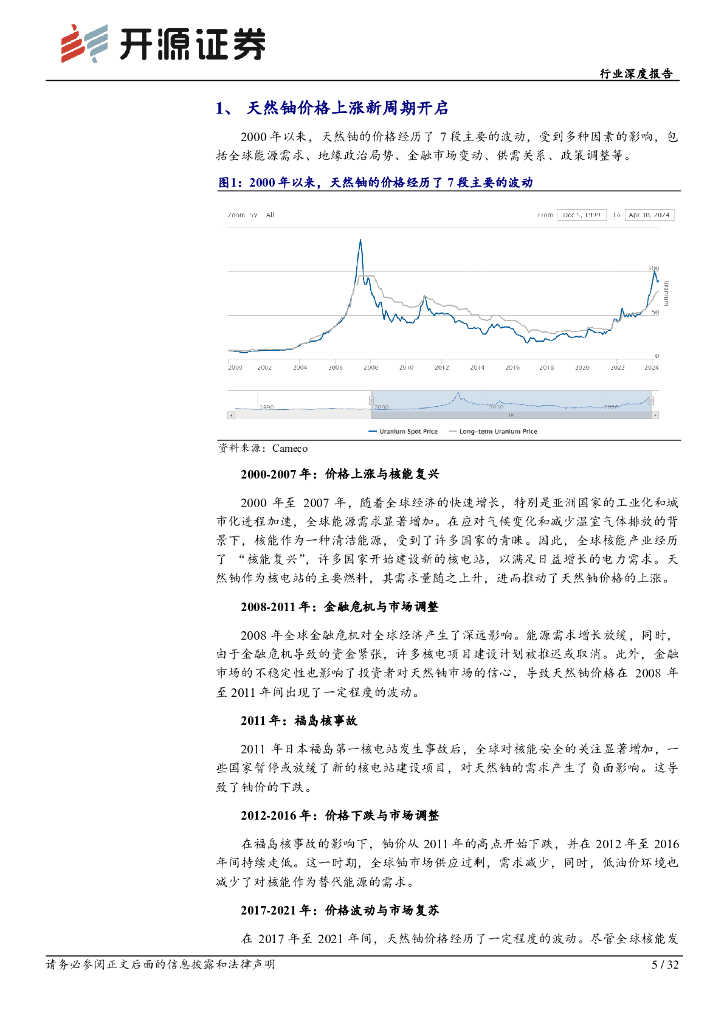 开源证券:有色金属行业深度报告:天然铀供需矛盾维持,价格景气周期拉开.pdf