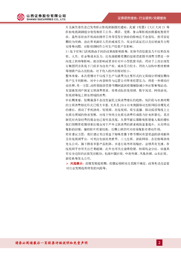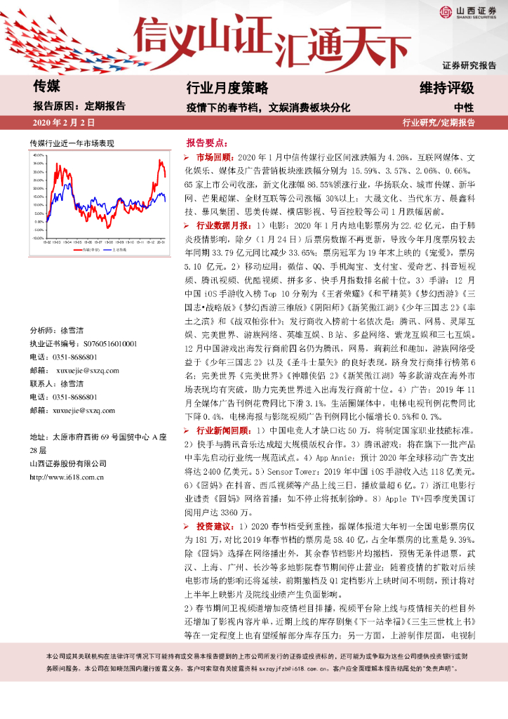 山西证券:传媒行业月度策略:疫情下的春节档,文娱消费板块分化.pdf