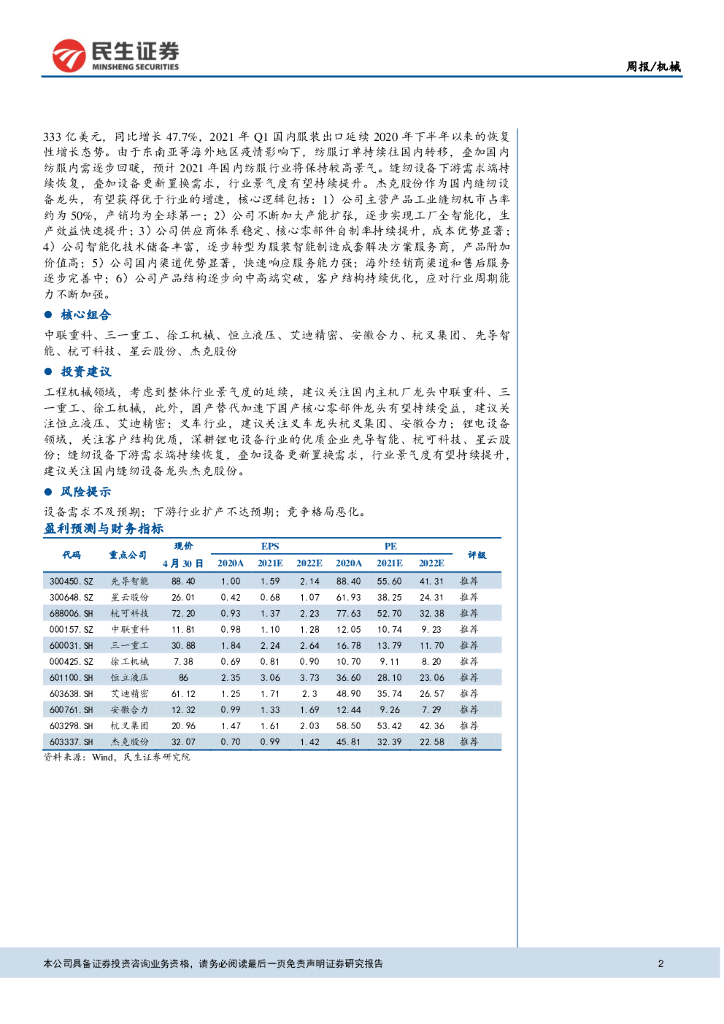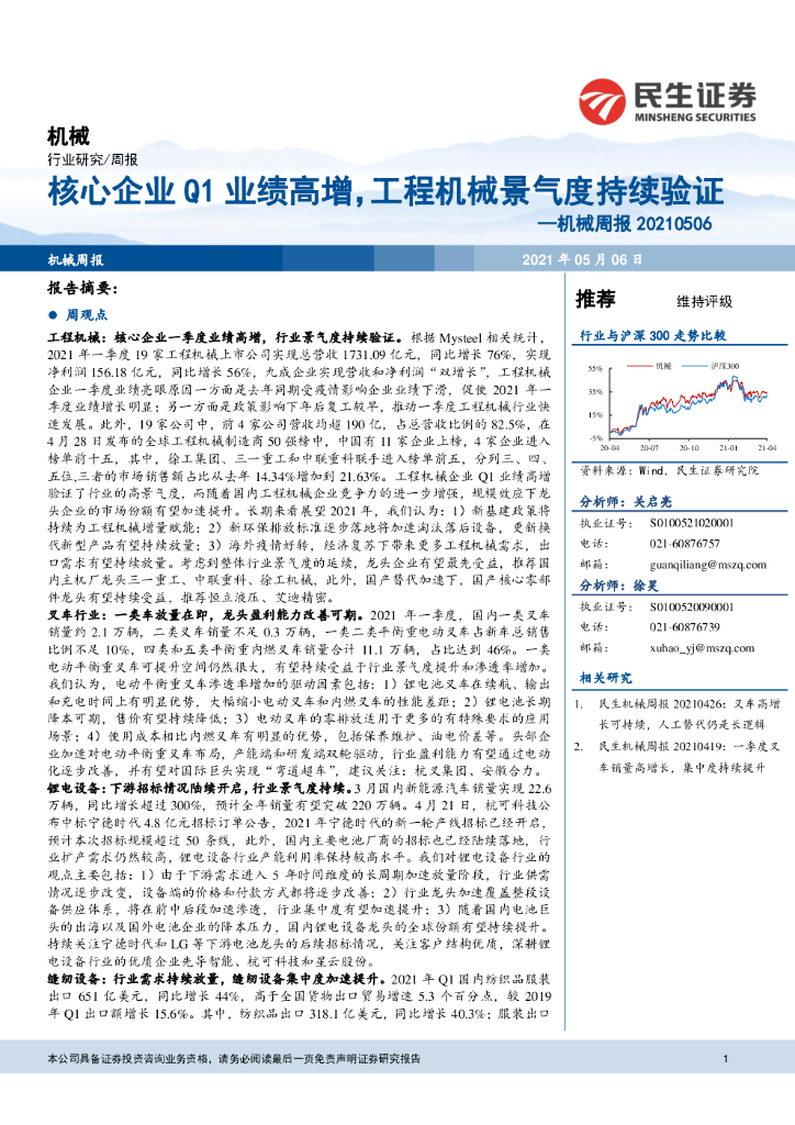 民生证券:机械周报:核心企业Q1业绩高增,工程机械景气度持续验证.pdf
