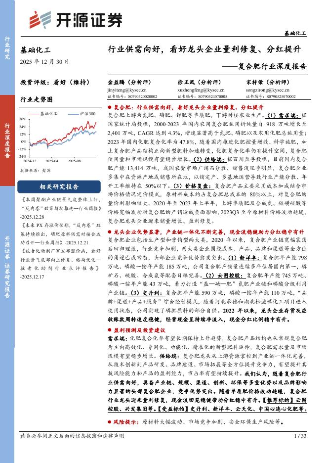 开源证券:复合肥行业深度报告:行业供需向好,看好龙头企业量利修复、分红提升.pdf