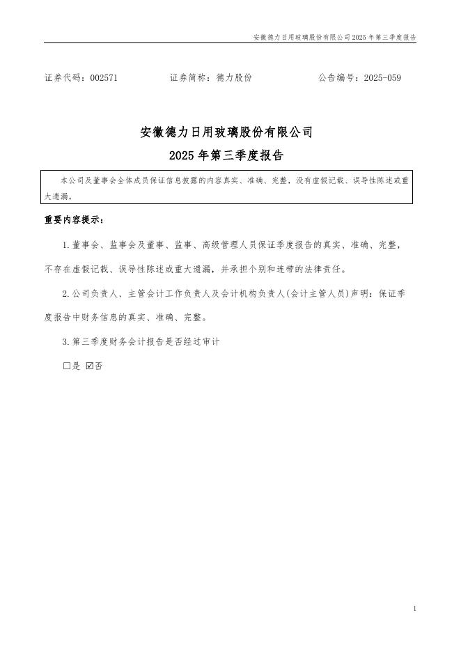 002571-德力股份:2025年三季度报告.pdf