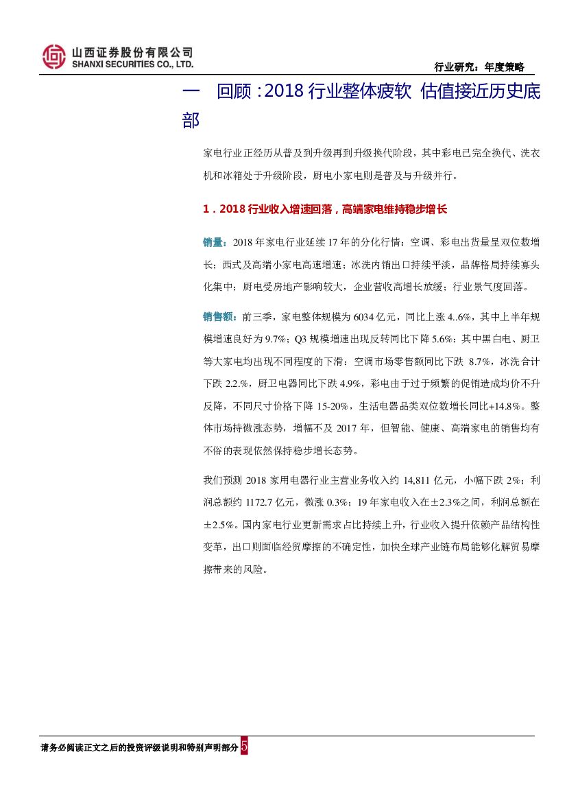 山西证券:家电行业2019年年度策略报告:行业景气度回落 关注龙头估值修复.pdf