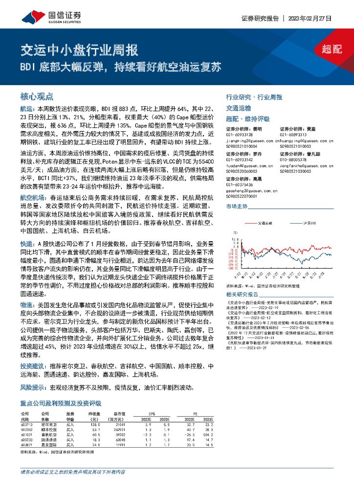 国信证券:交运中小盘行业周报:BDI底部大幅反弹,持续看好航空油运复苏.pdf