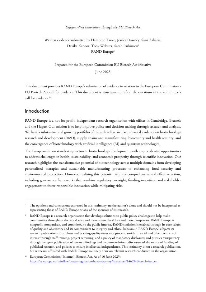 Rand兰德:2025年通过欧盟生物技术法案保护创新-兰德欧洲公司提交的证据报告(英文版).pdf