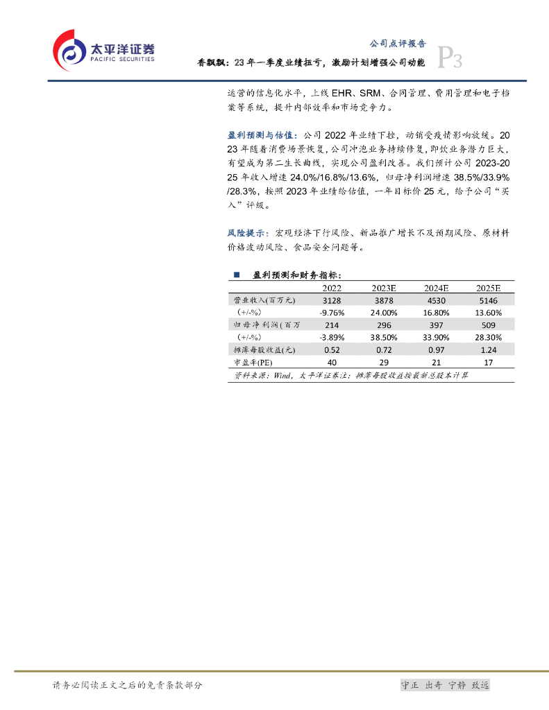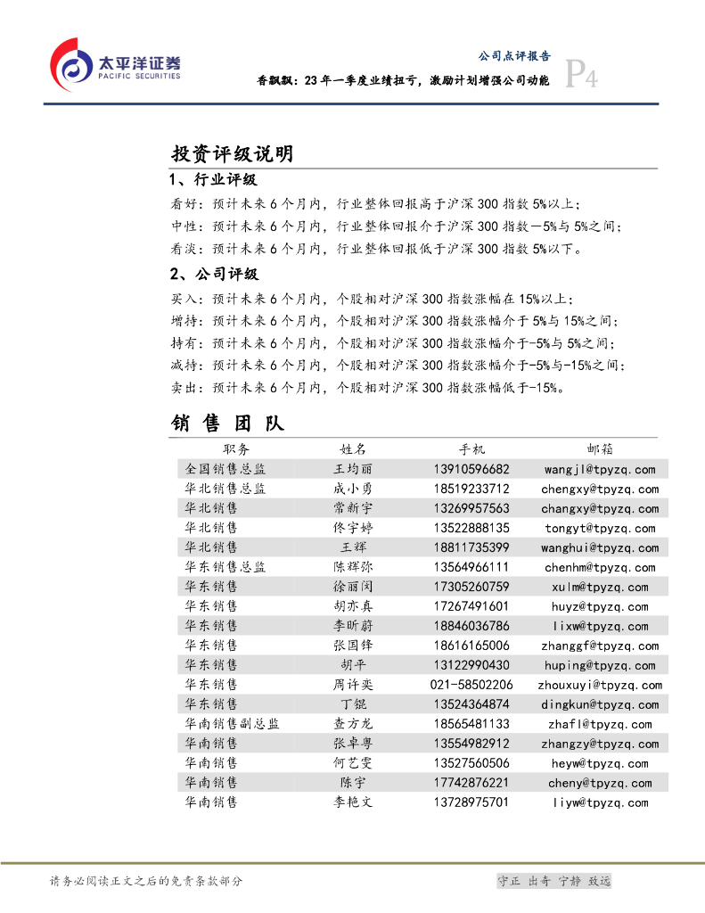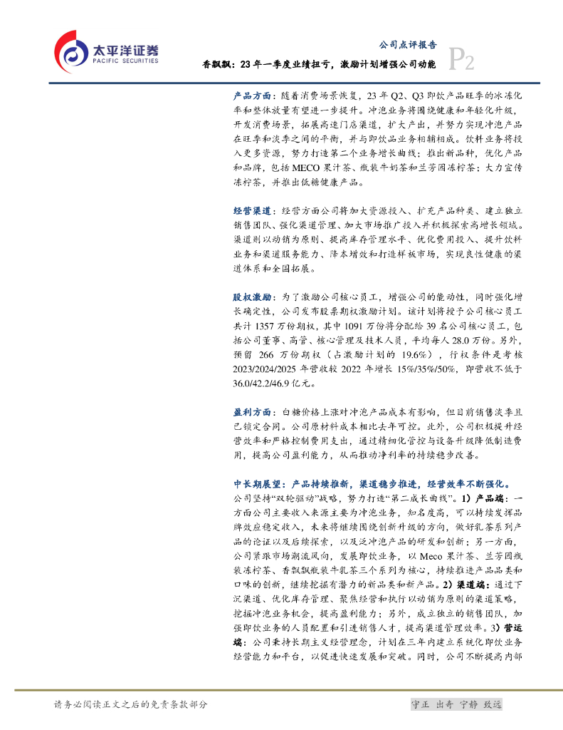 太平洋证券:香飘飘:23年一季度业绩扭亏,激励计划增强公司动能.pdf