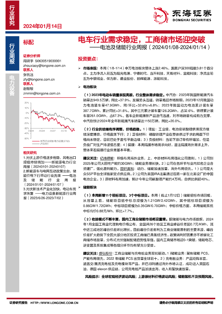 东海证券:电池及储能行业周报:电车行业需求稳定,工商储市场迎突破.pdf
