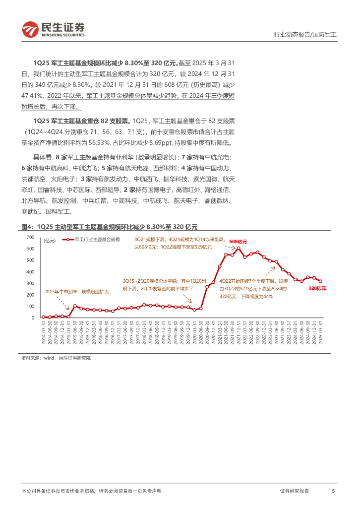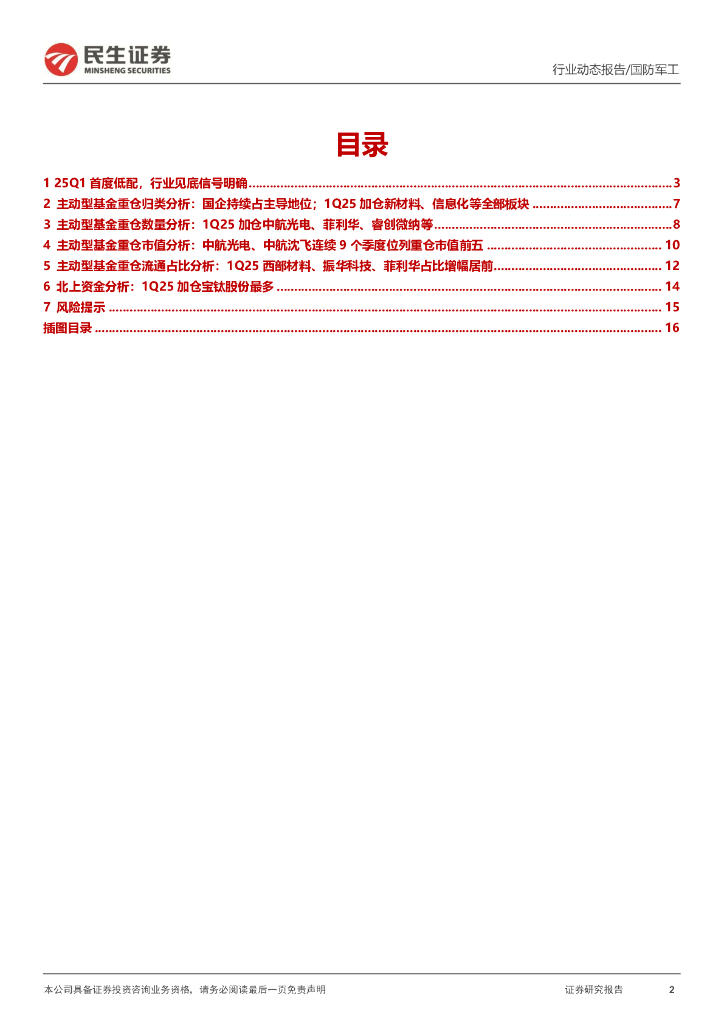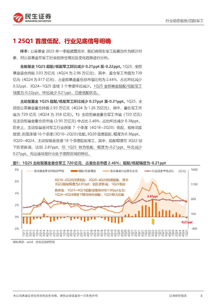 民生证券:军工行业2025年一季度公募基金持仓分析:1Q25机构低配军工;持仓“底部特征”明确.pdf