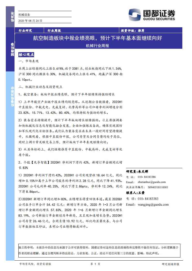 国都证券:机械行业周报:航空制造板块中报业绩亮眼,预计下半年基本面继续向好.pdf