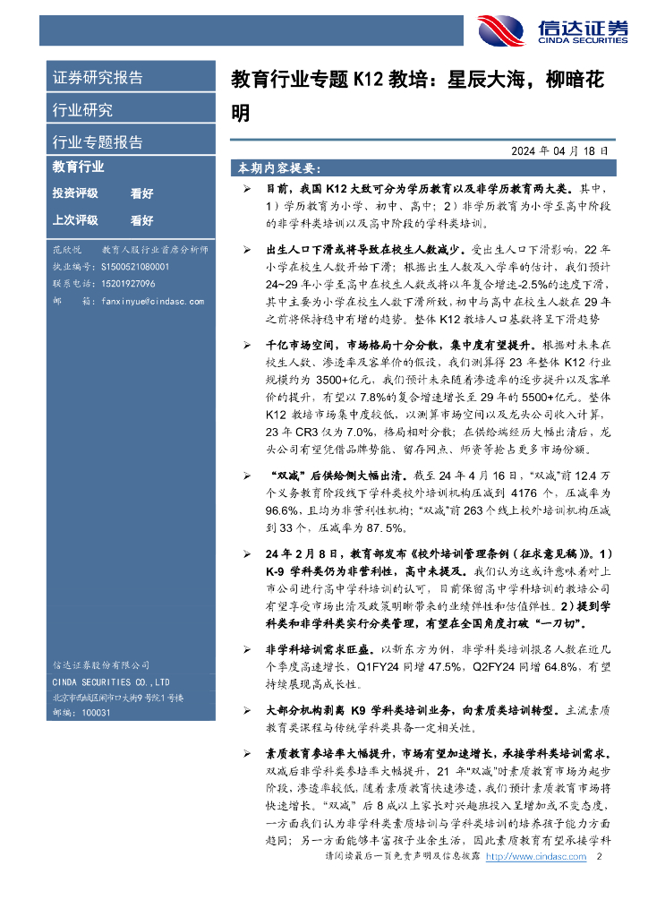 信达证券:教育行业专题K12教培:星辰大海,柳暗花明.pdf