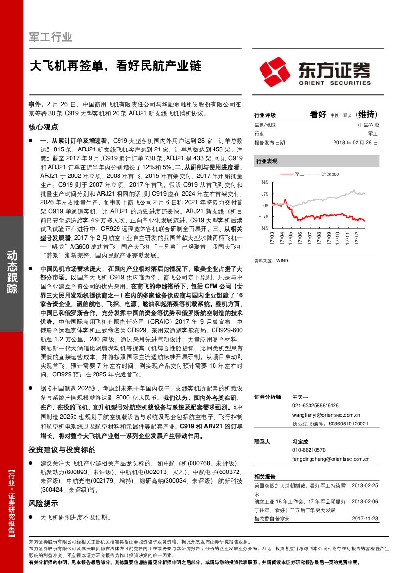 东方证券:军工行业动态跟踪:大飞机再签单,看好民航产业链.pdf