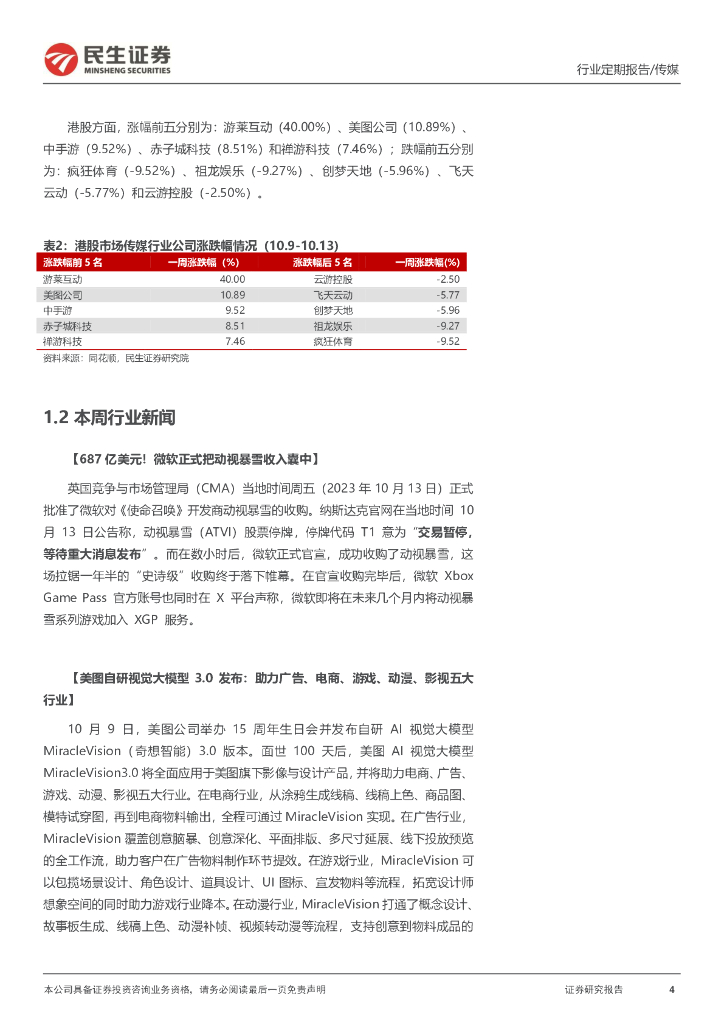 民生证券:传媒互联网行业周报:微软完成收购动视暴雪,关注三季报陆续发布.pdf